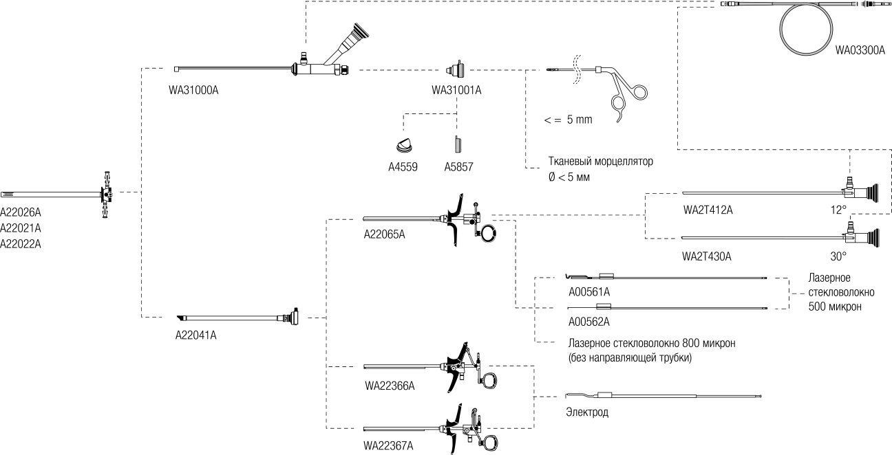 - Для энуклеации и морцелляции требуется только один тубус из-за совместимости со стандартными поворотными внешними тубусами.