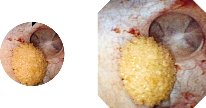 Больший размер изображения: Слева – традиционное изображение, полученное с фиброскопа (URF-P5), справа – URF-V