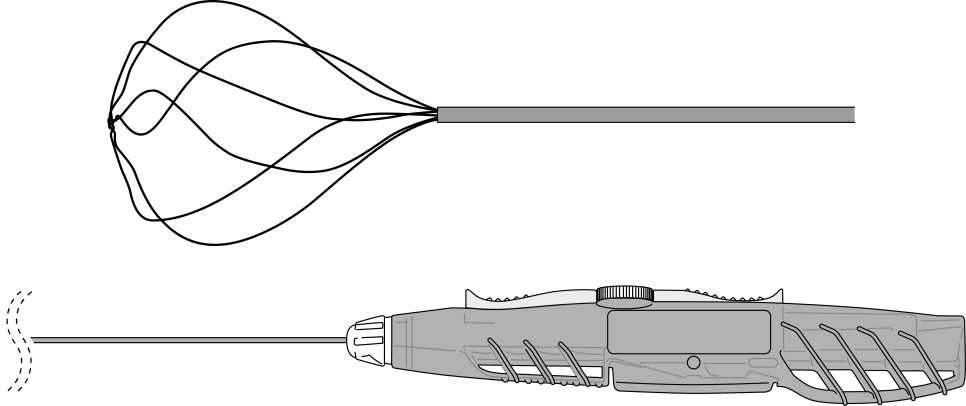 Простая конструкции 4-проволочной корзины позволяет удобно захватывать и извлекать конкременты. Отсутствие наконечника и закругленная форма проволоки гарантирует безопасное использование корзины внутри мочеточника с минимальным повреждением окружающих тканей в ходе процедуры. Трубка может вращаться, а эргономичная рукоятка позволяет удалять конкременты безопасно и эффективно.