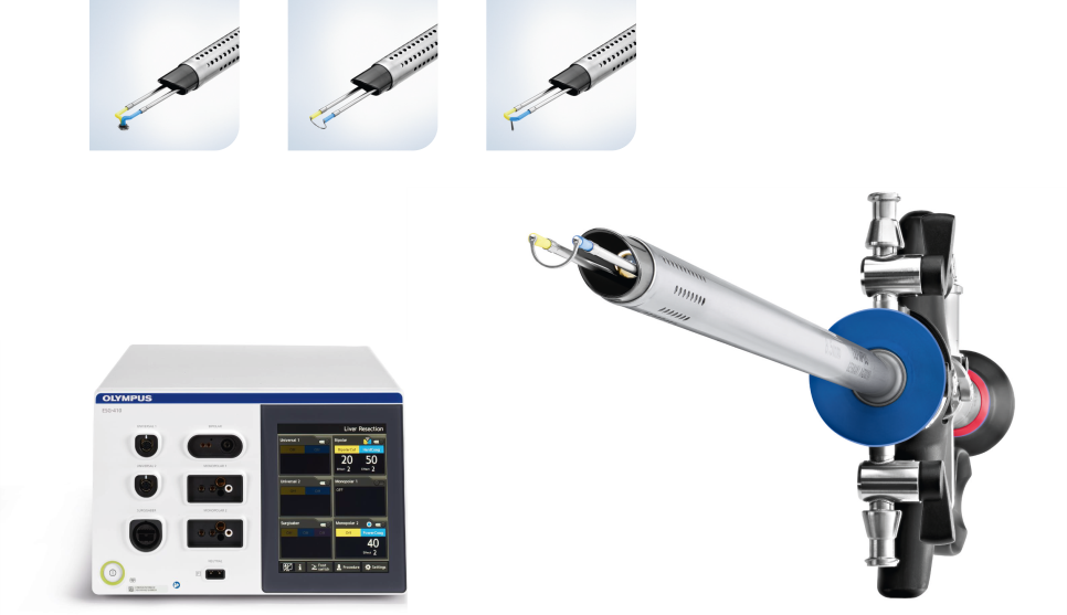 один ВЧ-генератор (Olympus ESG-400 или ESG-410) для всех ВЧ манипуляций: монополярное, биполярное, урологическое, гинекологическое и общее хирургическое.