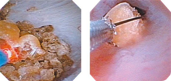 Больший размер изображения: Слева – традиционное изображение, полученное с фиброскопа (URF-P5), справа – URF-V