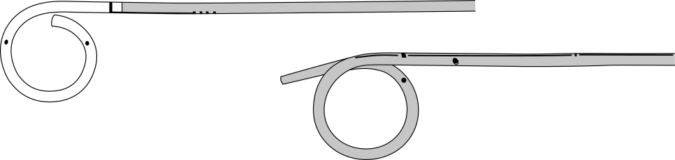 - Заостренный наконечник с изгибом для размещения в почке и каплевидная конструкция: легкость прохождения и стабильное размещение в почке.
