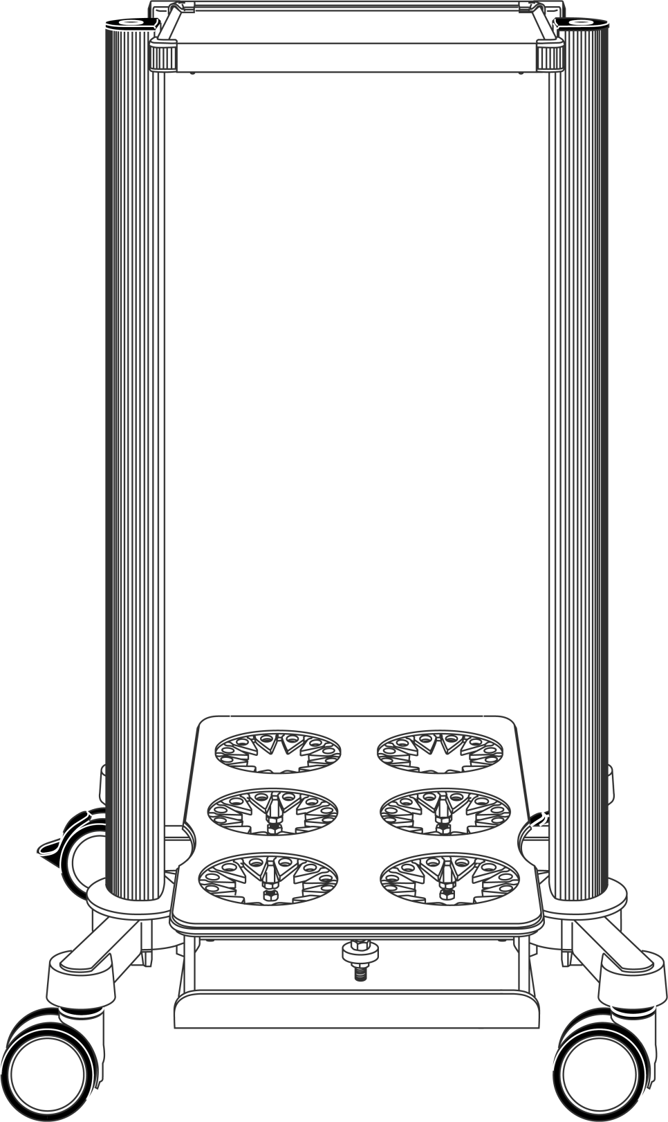 - Система расположена на прочной тележкес универсальным держателем контейнера.