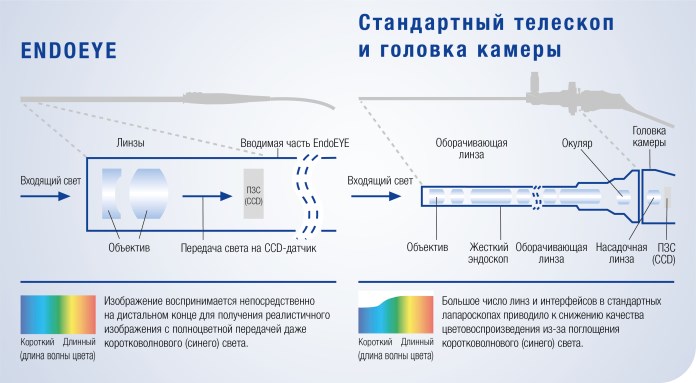 Размещение видеосенсора на дистальном конце эндоскопа играет ключевую роль в получении превосходного изображения. Изображение воспринимается, передается и обрабатывается напрямую, без потерь в качестве в сравнении c классическими системами. Дистальный видеосенсор заменяет систему стержневых линз, используемую в обычных телескопах. Как известно, эта система, как и любой оптический тракт, снижает цветопередачу и четкость изображения.