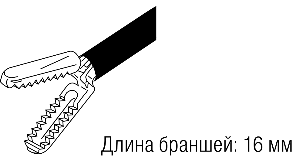 конструкция браншей с тонкими зубьями и длинные бранши обеспечивают атравматичный захват тканей кишечника и других чувствительных тканей