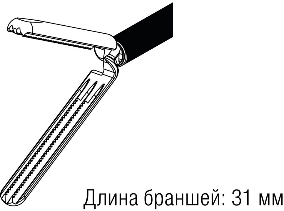 специальная конструкция браншей обеспечивает захват и повторную фиксацию тканей из грыжевого мешка, а также манипуляцию с кишечником